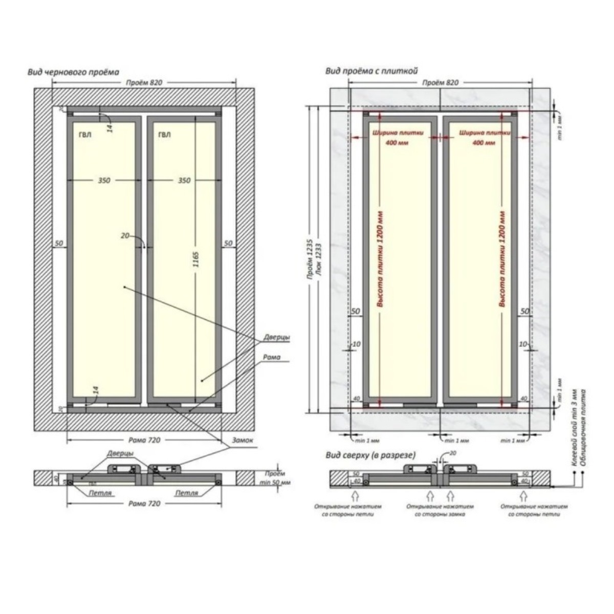 - Тип: Двустворчатый ревизионный люк