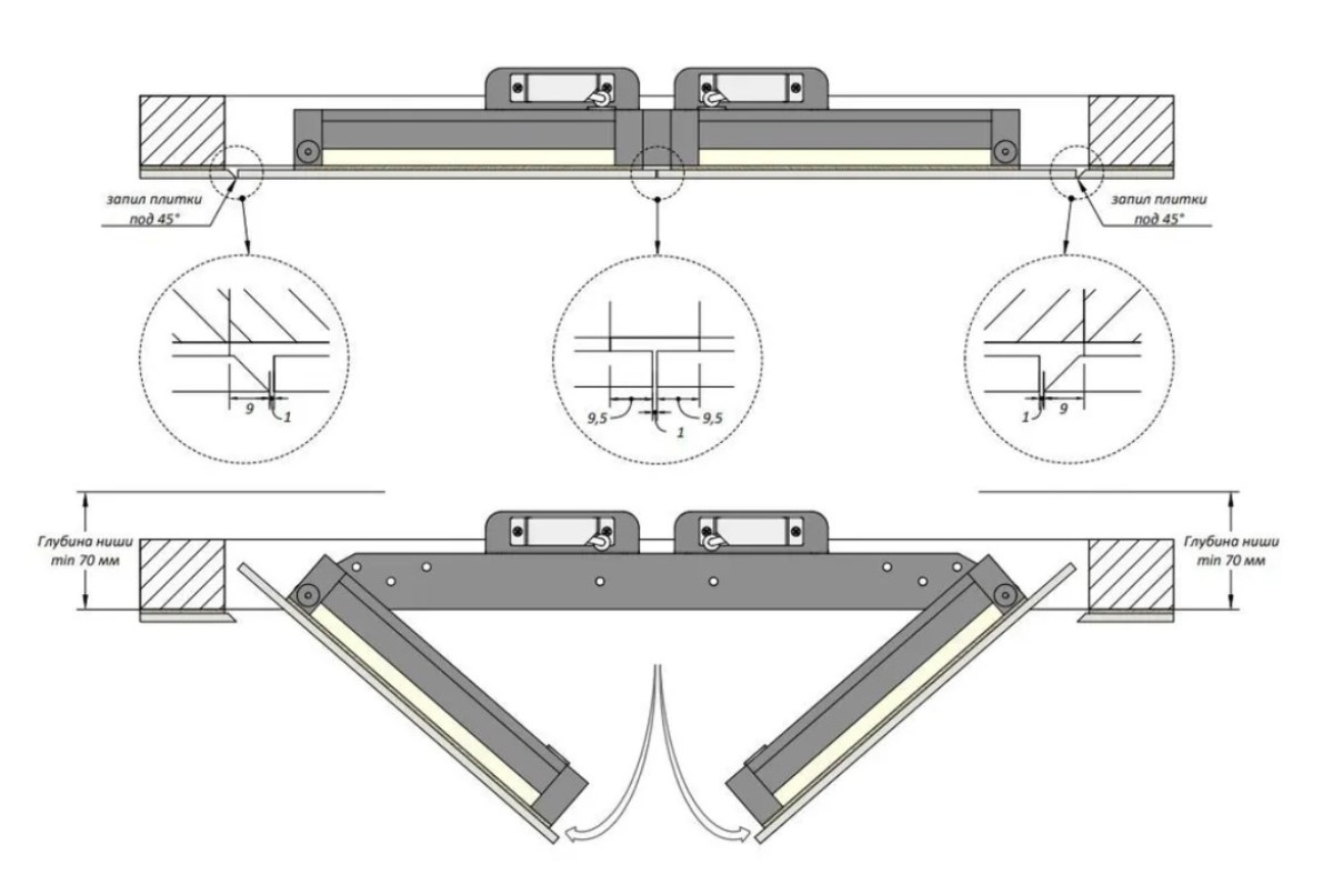 - Увеличенная площадь доступа: Двустворчатая система обеспечивает более широкий дверной проем, что делает манипуляции с сантехникой, вентиляцией, электрическими щитами или другими инженерными узлами значительно проще и комфортнее.